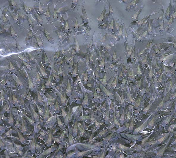 Хочу познакомить вас с достаточно новым, для меня, во всяком случае, вариантом скалярии, известным в продаже под названием "Перуанский альтум". О скаляриях сказано уже всё, поэтому остановлюсь только на некоторых отличиях этой разновидности от обычной скалярии. Приобрёл их в марте 2004 года. Девять четырёхсантиметровых, двухмесячных. Скорее всего F1, максимум F2. Росли очень быстро. Первый нерест в августе, при размере 15 см. То есть половая зрелость в семь, максимум, в восемь месяцев. Образовали три пары. Нерестятся каждые восемь дней, вне зависимости от температурного режима. Колебания температур были от 23 до 30 градусов. Воду сначала не смягчал, поэтому первые нересты удачными назвать нельзя. Зато опыт получился очень наглядный. При 30 нем. гр. жёсткости оплодотворения не происходило. При 25 гр. - видел живую личинку, которая не поплыла. При 20 гр. - личинка поплыла, но артемию не взяла. При 15 - малёк рос прекрасно, но месяца в полтора-два выявились множественные деформации у значительной части подростков. В основном - искривление плавников. Жаберные крышки не повреждались. При 10 гр. - никакой патологии не было. В дальнейшем производители содержались в мягкой воде, при жёсткости в 5 гр. Если нет планов размножить, то и в очень жёсткой воде (30 гр.), взрослые рыбы чувствуют себя прекрасно.