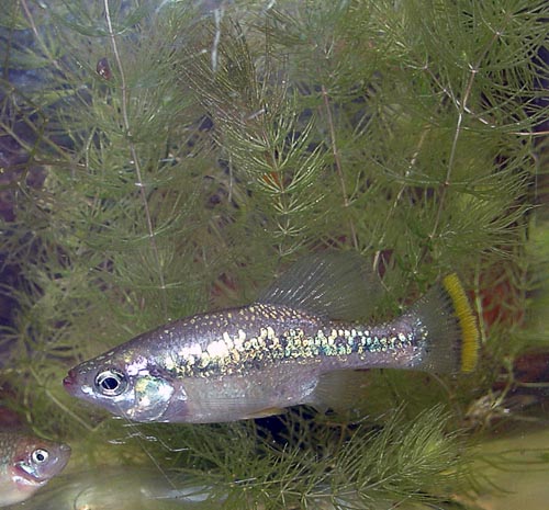 ![]() Живородящие рыбки семейства Гудиевых (Goodeidae) мало известны широкому кругу любителей. И лишь немногие видели их “живьем”. А жаль. Гудиевые – довольно интересный объект для содержания и наблюдения. И когда мне предоставилась возможность приобрести одного из представителей гудиевых – глянцевую амеку, которую до этого я видел лишь на фотографиях, сомнений не было – беру. Всего были куплены четыре штуки: один самец и три самки. К сожалению, самая крупная и полная самка погибла в первый же день, хотя остальные особи на вид чувствовали себя удовлетворительно. О возможных причинах гибели самки чуть позже. После адаптации и карантина оставшаяся тройка была поселена в небольшой 40-литровый аквариум, засаженный несколькими кустами криптокорины, в компании с пецилиями (Xiphophorus variatus). Вода не фильтровалась. Временная аэрация и подмена воды в среднем два раза в месяц по 15-20% от объема аквариума. К составу воды и корма амеки оказались сравнительно неприхотливы. Проштудировав довольно скудную и противоречивую доступную мне литературу, выяснил следующее: род Амека – монотипный и насчитывает всего один вид. Родина – Мексика. Эндемик. Имеет довольно узкий ареал распространения. Амека водится в бассейнах рек Рио-Амека и Рио-Теучитлан, протекающих в мексиканском штате Халиско. Также имеются небольшие популяции и в других местах. К сожалению, иследования ихтиологов в конце 90-х годов ХХ века показали, что ареал амеки сократился, а в некоторых местах она уже исчезла. Природные биотопы амеки – это горные речки и проточные озера с достаточно жесткой и щелочной водой. В низинах амека не встречаются.